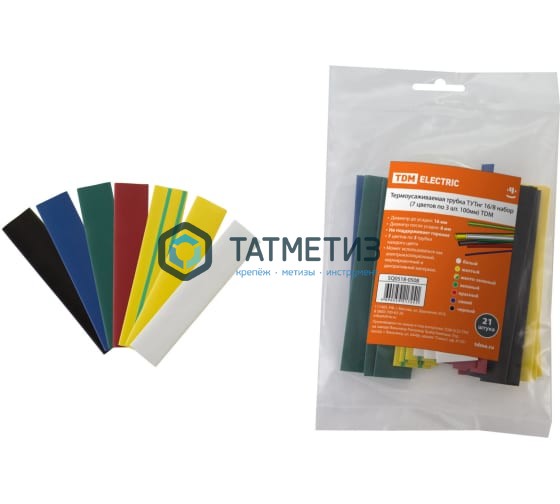 Набор термоусадочных трубок 16/8 (7 цветов по 3шт) 10см Navigator
