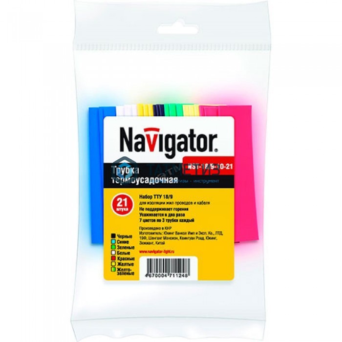 Набор термоусадочных трубок 8/4 (7 цветов по 3шт) 10см Navigator | Под заказ |