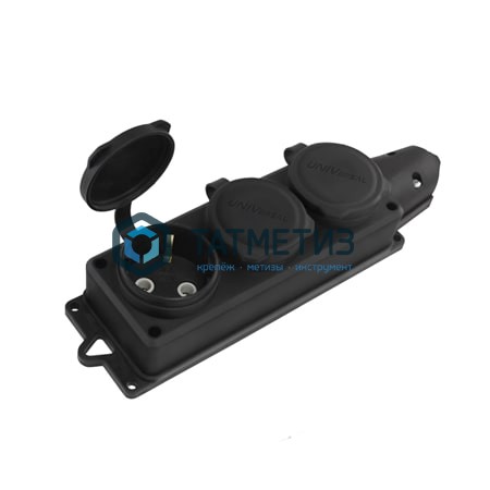 Колодка Компакт из каучука, трехместная, с заземлением и заглушками, номанальный ток 16 А, степень защиты IP44, черного цвета.