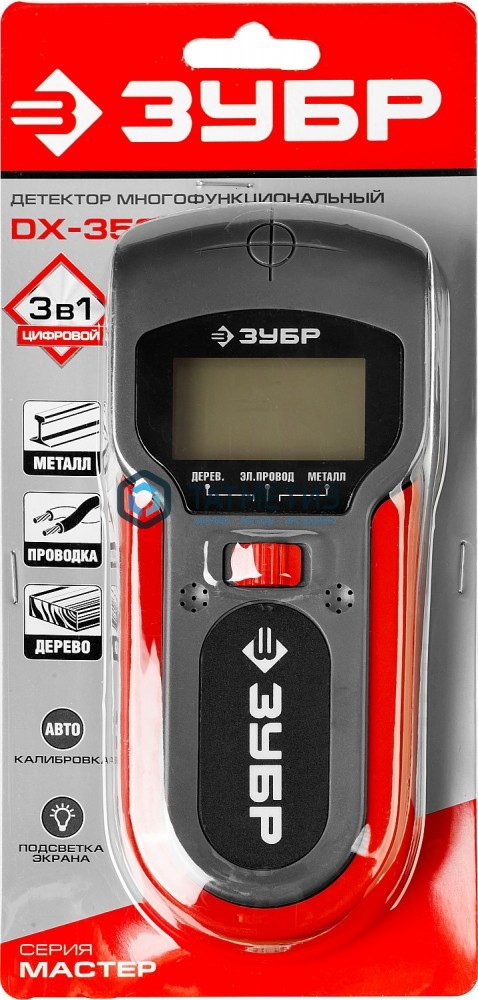 Металлодетектор многофункц, ЗУБР, ЖК, автокалибровка, металл(38мм), проводка(50мм), дерево(19мм)