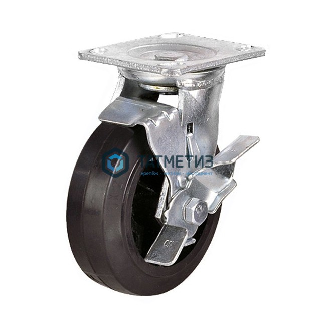 Колесо большегрузное обрезиненное поворотное c тормозом d 150 мм